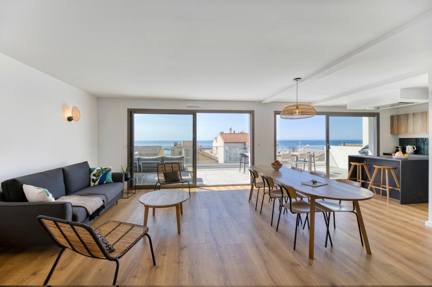 SOUTH-OF-FRANCE Magnifique T5 avec CLIM, terrasse 30 m2 vue sur mer et barbecue, parking, 40m de la plage
