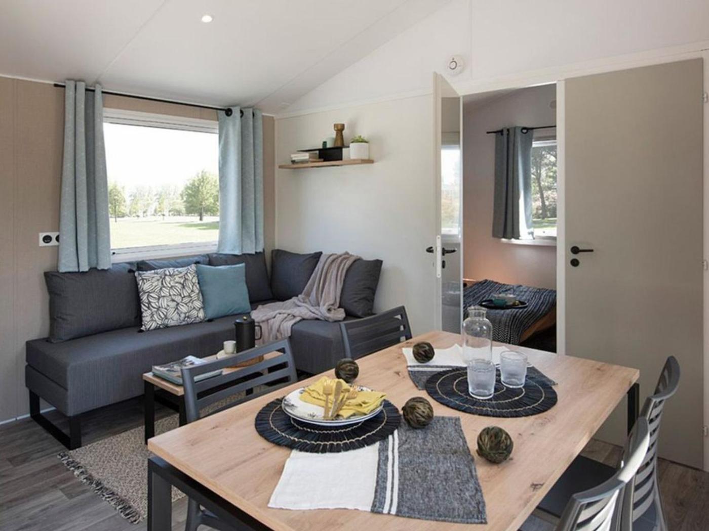 Mobile Home. Featuring a private entrance, this air-conditioned mobile home is comprised of 2 bedrooms, 1 bathroom and a kitchen. The well-fitted kitchen features a refrigerator, kitchenware and a microwave. Boasting a terrace, this mobile home also offers a dining area, heating and a TV. The unit offers 3 beds.