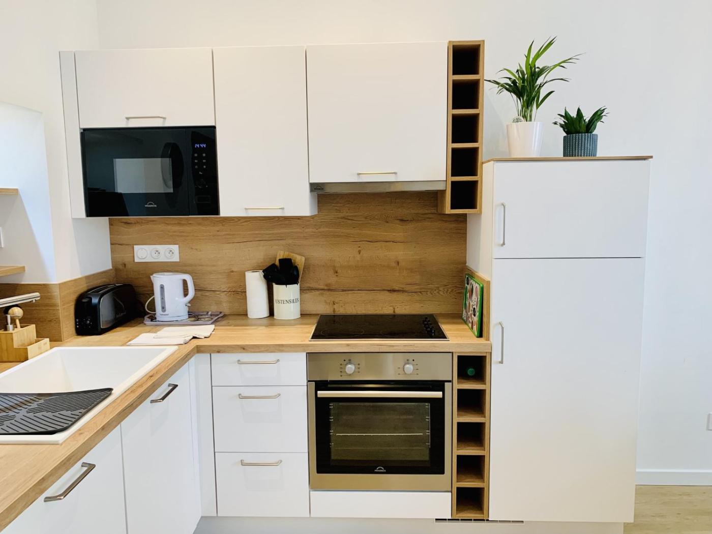 Deluxe One-Bedroom Apartment. This apartment includes 1 living room, 1 separate bedroom and 1 bathroom with a shower. In the kitchen, guests will find a refrigerator, a dishwasher, kitchenware and an oven. The apartment offers a washing machine, a tea and coffee maker, heating and a TV with satellite channels. The unit has 2 beds. ;
