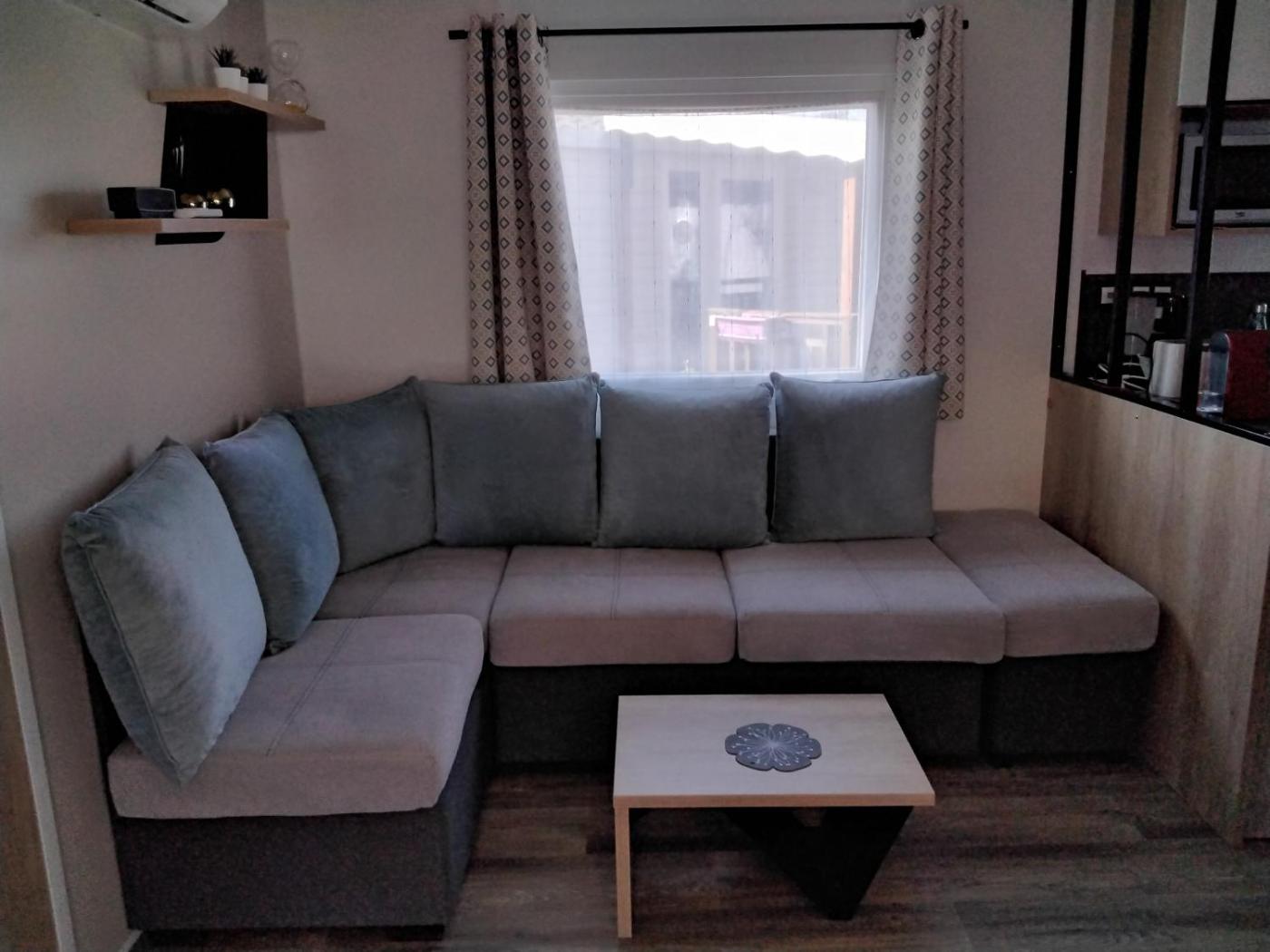 Mobile Home. This air-conditioned mobile home includes 1 living room, 3 separate bedrooms and 1 bathroom with a shower. In the well-fitted kitchen, guests will find a stovetop, a refrigerator, kitchenware and an oven. This mobile home has a washing machine, a coffee machine, a flat-screen TV and a terrace. The unit has 5 beds.