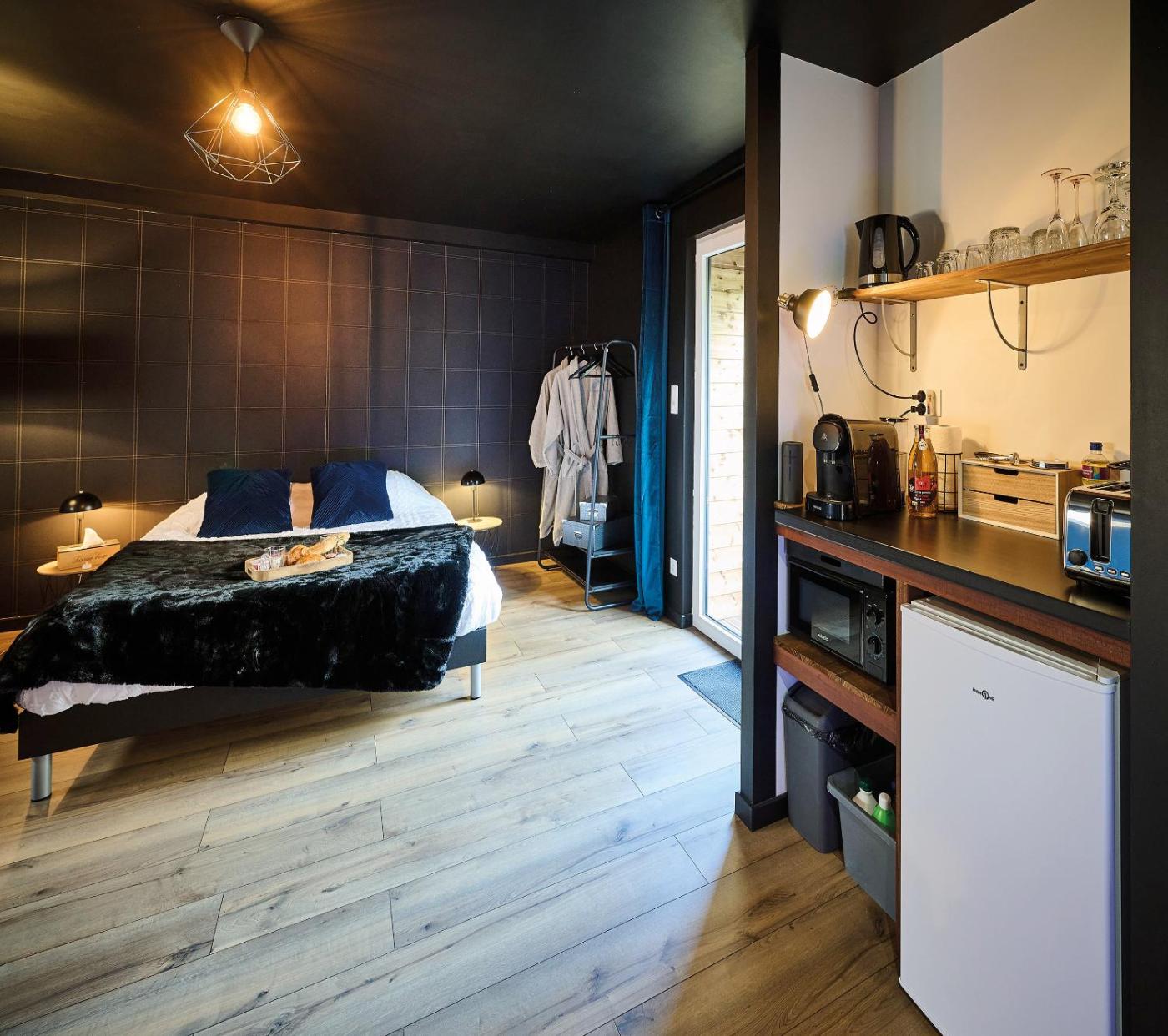One-Bedroom Apartment. This apartments standout feature is the hot tub. Boasting a private entrance, this apartment also includes 1 bedroom, a seating area and 1 bathroom with a bath and a shower. A kitchenette fitted with a refrigerator, a microwave and a toaster is available for cooking and storing food. Featuring a terrace with garden views, this apartment also offers a tea and coffee maker and a flat-screen TV with streaming services. The unit has 1 bed.