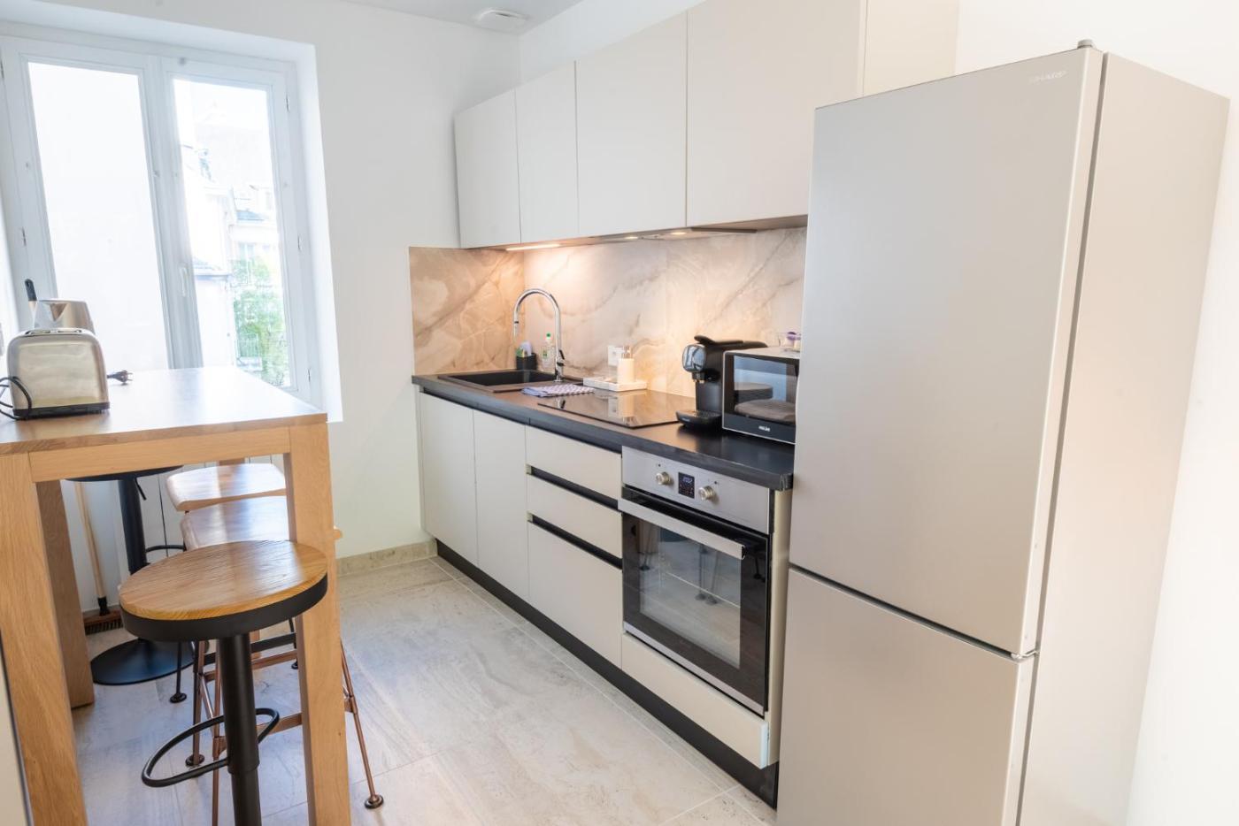 One-Bedroom Apartment. Featuring a private entrance, this apartment comprises 1 living room, 1 separate bedroom and 1 bathroom with a walk-in shower and a hairdryer. The well-fitted kitchen features a stovetop, a refrigerator, a dishwasher and kitchenware. The apartment provides a washing machine, a tea and coffee maker, a seating area, a flat-screen TV with satellite channels, as well as city views. The unit offers 2 beds.