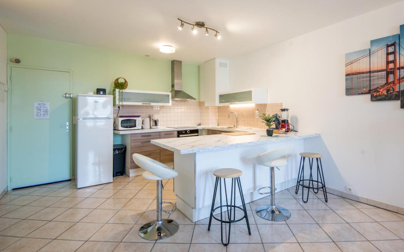 Two-Bedroom Apartment. This apartment includes 1 living room, 1 separate bedroom and 1 bathroom with a shower and a hairdryer. In the kitchen, guests will find a stovetop, a refrigerator, a dishwasher and kitchenware. Boasting a terrace with city views, this apartment also offers a washing machine and a flat-screen TV. The unit has 2 beds.