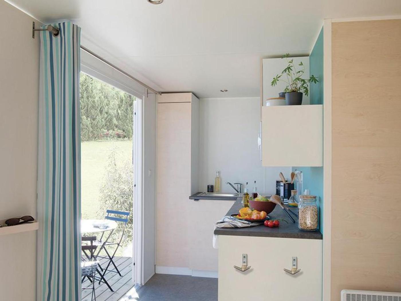 Mobile Home. Boasting a private entrance, this air-conditioned mobile home comes with 1 bedroom, 1 bathroom and a kitchen. The mobile homes kitchen, which has kitchenware and a microwave, is available for cooking and storing food. The mobile home features a coffee machine, a dining area and a terrace.