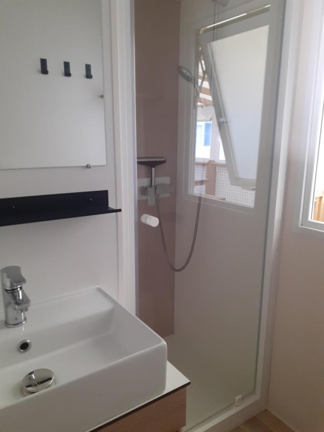 Mobile Home. Featuring a private entrance, this mobile home is comprised of 1 living room, 3 separate bedrooms and 2 bathrooms with a shower. In the kitchen, guests will find a stovetop, a refrigerator, kitchenware and an oven. Boasting a terrace, this mobile home also offers a coffee machine, a seating area and a flat-screen TV. The unit offers 6 beds.