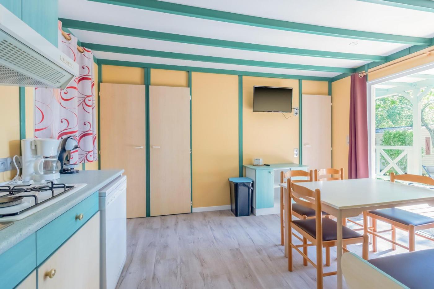 Three-Bedroom Chalet. Boasting a private entrance, this air-conditioned chalet comes with 3 bedrooms and 1 bathroom with a shower. The well-equipped kitchen has a dishwasher, kitchenware and a microwave. Featuring a patio, this chalet also features a coffee machine and a TV. The unit has 3 beds.