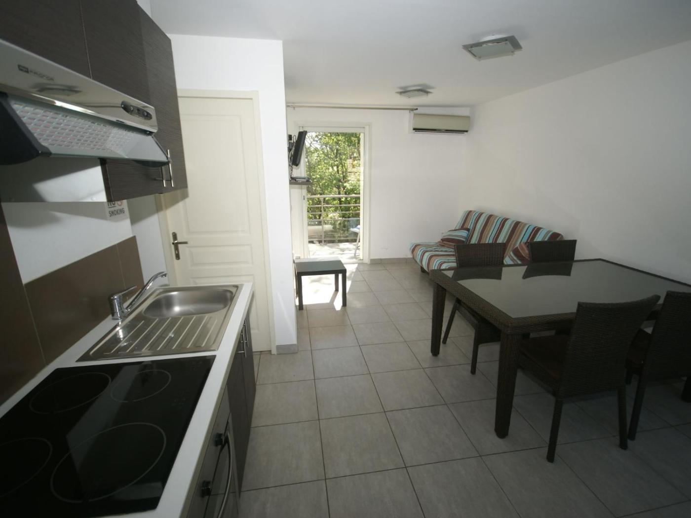 One-Bedroom Apartment. This air-conditioned apartment is comprised of 1 living room, 1 separate bedroom and 1 bathroom with a shower. The well-equipped kitchen features a stovetop, a refrigerator, an oven and a microwave. Featuring a balcony with garden views, this apartment also offers a sofa and a TV with cable channels. The unit offers 3 beds.