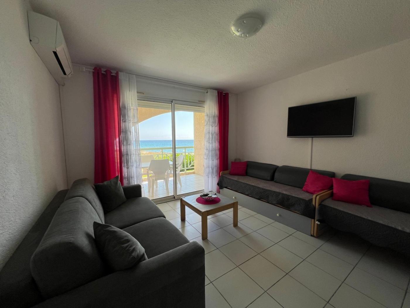 Featuring air-conditioned accommodation with a private pool, Appart bord de mer avec piscine is located in San-Nicolao. This beachfront property offers access to a terrace and free private parking. The property is non-smoking and is situated 400 metres from Moriani Plage.
