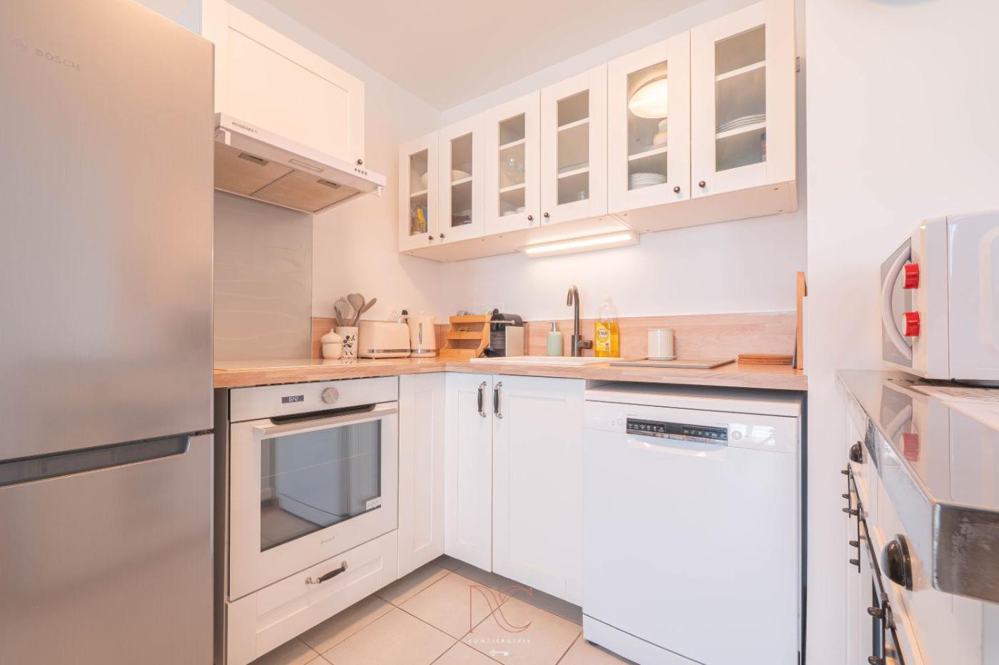 One-Bedroom Apartment. This apartment comes with 1 living room, 1 separate bedroom and 1 bathroom with a bath and a hairdryer. The well-fitted kitchen features a stovetop, a dishwasher, an oven and a microwave. This apartment has a washing machine, a tea and coffee maker, a flat-screen TV and a terrace. The unit has 3 beds.