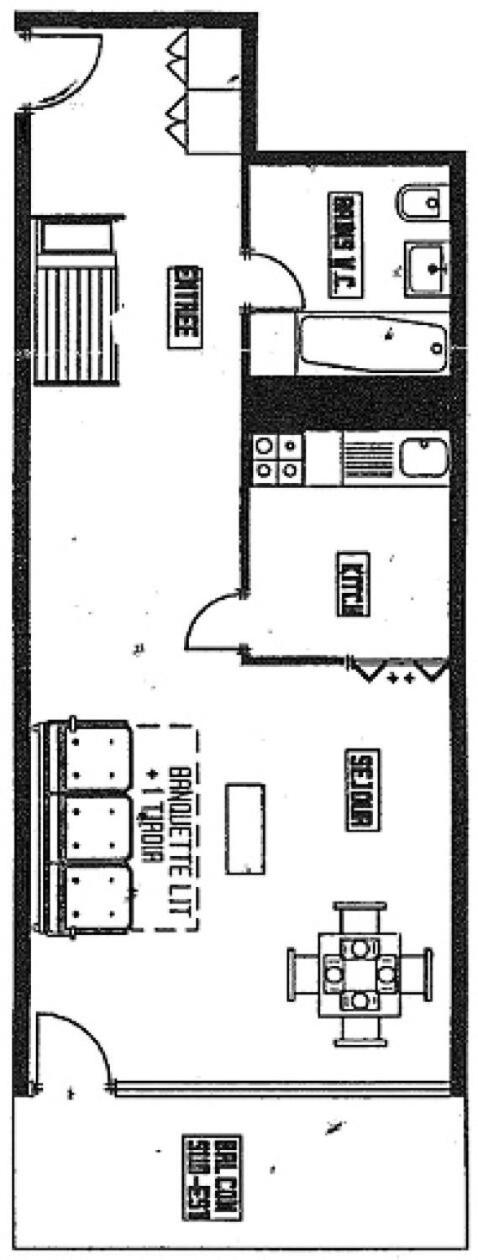 Leading onto a balcony, the apartment consists of a fully equipped kitchen and a TV.